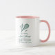Celebre o último swing da noiva antes do anel com esta elegante caneca personalizada de tênis para despedida de solteira. Com uma ilustração elegante de raquete cruzada e martini com nome, local e data personalizados, esta caneca de cerâmica elegante de duas cores é um presente perfeito para uma despedida de solteira temática de tênis, fim de semana de garotas ou presente para as damas de honra.