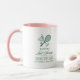 Celebre o último brilho da noiva antes do anel com esta elegante caneca personalizada de tênis para despedida de solteira. Com uma ilustração elegante de raquetes cruzadas e martini com nome, local e data personalizados, esta caneca de cerâmica estilosa de duas cores é um presente perfeito para uma despedida de solteira temática de tênis, fim de semana de garotas ou presente para as damas de honra.