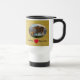 Um alce e seu bezerro bonitinho com um lago e montanhas à distância. O slogan "Noses frias (Um coração vermelho) Corações quentes" também aparece. Tudo sobreposto a um fundo de couro braintan. Um belo presente para o Dia de as mães.