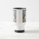 Caneca de viagem com um gato branco no estilo de Alphonse Mucha! Este gatinho liso e de olhos azuis posou com flores cor-de-rosa e cobertores azuis. Um presente fabuloso para amantes de gatos e colecionadores de Art Nouveau!