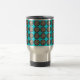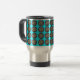 Apresentados em um fundo de cor aqua são pranchas de toucador em um padrão.