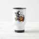 Um dragão barbudo vestindo uma bruxa que se senta ao lado de um jack-o-lanterno brilhante, cercado por folhas coloridas do outono, numa ilustração temática do Halloween.