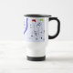 Uma caneca de viagem de excelente para professores... um ditado único para professores ocupados! Três figuras de palitos sobre um fundo azul dois em bonés de vermelho e verde e um com banda azul. O ditado pode ser mudado como desejado.