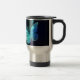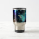 Fabulosa, brilhante, azul e amarela, borboleta noturna sobre fundo escuro.