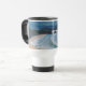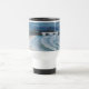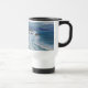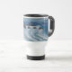 A pintura retrata um dia nebuloso e nublado na costa, com ondas rítmicas chegando à praia.