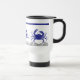 Caneca de viagem de Caranguejo Costeiro. Traga um gosto do mar onde quer que você vá com esta charmosa caneca de viagem de temas costeiros. Apresentando uma ilustração de caranguejo azul marinho em negrito contra um fundo branco nítido, este design é bordado com uma simples faixa azul e um delicado motivo de onda desenhado à mão. Perfeito para amantes de frutos do mar, matas de praia, ou qualquer um que se sinta em casa perto da água.