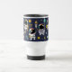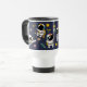 Um gráfico do astronauta clipart, Outer Space: astronauta segurando o balão como um planeta, um foguete, estrelas, ícone de OVNI, ícone de satélite espacial, planeta Saturno, nave espacial e outros. Sobre fundo azul de Oxford (azul marinho).