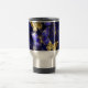 Composição de borboletas luxuosas de safira e joias de ouro sobre fundo texturizado a azul.