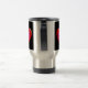 Corações vermelhos e cor-de-rosa numa caneca de viagem preta de fundo. Perfeito para alguém que você ama ou um presente de dia de os namorados excelente.