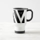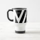 Esta caneca elegante apresenta listras pretas e brancas com iniciais personalizáveis na frente e atrás.
