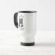Engraçado caneca de viagem para misantropos apresentando um gato preto rabugento com uma xícara de café e o texto, "Odeio pessoas matinais... e manhãs... e pessoas."