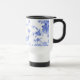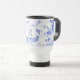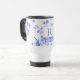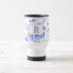 padrão tradicional da porcelana azul-branca, caneca de viagem inicial. Tendência ainda eterno em casas modernas e cozinhas de campo. porcelana branca azul com texto inicial de monograma que é personalizável