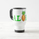 A design de caneca de viagem apresenta um marcador original de um abacaxi tropical havaiano, formando o O em ALOHA. Não vê o que está procurando? Precisa de ajuda para a personalização? Clique em "contate este designer" para criar algo apenas para você!