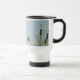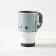 Uma pintura digital de gansos canadenses (Branta canadensis) nadando com cattails (Typha latifolia) e outra vegetação em primeiro plano. O texto personalizável que lê "Canada Goose" também é exibido.