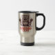 A caneca de viagem com tampa tem o gato "para fora" forçado nela.