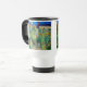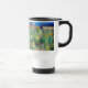 Caneca de viagem com a pintura a óleo de Claude Monet O Jardim do Artista em Vétheuil (1880). Os girassóis e outras lindas flores azuis e vermelhas fazem um percurso no jardim onde as crianças estão dando um passeio agradável. Um presente de excelente para fãs do impressionismo e da arte francesa.