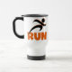 Tirando T-shirts, canecas, bolsas, guardas, topos de tanques, capuzes, e outros roupa e presentes para corredores com uma pista de silhueta preta e um texto laranja que lê RUN. Esses itens de roupa RUN e presentes são excelente para qualquer um que esteja treinando para um 5K, qualquer um que apenas ame correr, ou alguém que já tenha realizado várias maratonas!