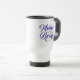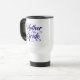 Esta caneca de viagem é mostrada com a mãe da impressão da noiva; a cor do texto é azul real. Personalize este item ou comprar conforme projetado. Imagem licenciada