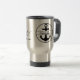 Caneca de viagem com "O lago é meu lugar feliz" em um estilo tipográfico moderno em um lado e uma âncora dividida com área personalizada para o nome da pessoa ou nome do lago.
