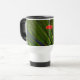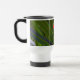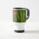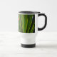 Esta Caneca de viagem apresenta uma fotografia original em close feita por ZoeSPEAK de um amante de palmetto de serra. A serra palmetto é uma planta nativa da Flórida, acrescentando uma bela camada verde abaixo da camada para as florestas de pinheiros à luz do sol. Na foto, nós vemos os detalhes das folhas à medida que elas se espalham e parecem embrulhar a borda da arte, um adorável pacote da natureza. Há um rótulo opcional, um oval vermelho, com a menção "GREEN MUG", uma vez que a caneca é reutilizável em vez de descartável. O rótulo adiciona um toque agradável de ironia colorida, mas pode ser removido se preferir.