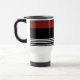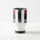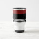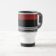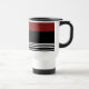 Caneca de viagem de café com tiras em preto branco e vermelho >horizontal