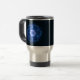 Apresenta uma representação fractal, de tom azul, da radiação de Cherenkov na água. O brilho azul na água que circunda os reatores nucleares é a radiação de Cherenkov. Quando uma partícula carregada passa por um meio a um mais alto de velocidade que a velocidade da luz nesse meio, uma radiação fraca é produzida pelo meio. Nas partículas carregadas de água, as moléculas de água são excitadas, que voltam ao seu estado normal emitindo fótons de luz azul. Como a partícula está se movendo mais rápido que a velocidade da luz na água, ela pode disparar uma cascata de fótons em fase entre si e pode interferir construtivamente para formar um brilho azul visível. Isto é algo análogo a um boom sônico na atmosfera. Esse efeito foi observado pelo cientista russo Pavel Cherenkov em 1934, quando lhe foi pedido que analisasse os efeitos da radioatividade em líquidos. Cherenkov ganhou um prêmio Nobel em 1958.