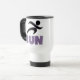 Tirando T-shirts, canecas, bolsas, guardas, topos de tanques, capuzes, e outros roupa e presentes para corredores com um corredor de silhueta preto e texto roxo que lê RUN. Esses itens de roupa RUN e presentes são excelente para qualquer um que esteja treinando para um 5K, qualquer um que apenas ame correr, ou alguém que já tenha realizado várias maratonas!