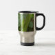 minúscula sapo verde da árvore esconde-se do calor da tarde à sombra de uma orelha elefante