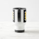 Aproveite o café ou a bebida favorita desta caneca de viagem preta para mostrar o seu amor pela corrida enquanto dirige para o trabalho ou outros locais. Esta caneca de viagem é personalizada com um nome e as palavras Tempo de Corrida e pode ser personalizada facilmente com outras palavras, ou o número de um driver. Esta caneca de café faz um presente de excelente para alguém que adora competir ou ganhou uma corrida, automóvel, mota, terra, pista, moto ou outras corridas de bicicleta. Uma bandeira branca e preta ondulada centrada num fundo amarelo texturizado. Uma borda em preto e branco cerca a arte. Esta imagem está em ambos os lados da caneca e em um fundo de caneca preta com as palavras personalizáveis no centro entre as imagens de arte. Esta arte racial original é de Phyllis Dobbs.