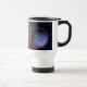 Uma imagem fractal, muito colorida e giratória aparece duas vezes. Uma vez sobreposta a um fundo espacial estrelado; uma segunda vez em uma esfera pequena cercada por uma aura brilhante. Talvez uma sonda lançada de uma nave-mãe, ou um ovo cósmico. Adicione seu próprio texto no verso.