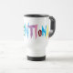 Viagem/Viagem ao trabalho Mug Você não precisa abrir mão de um design colorido, engraçado ou atraente para a função de uma caneca de viagem de alto nível. As canecas de viagem ao trabalho de Zazzle apresentam uma tampa revestida de borracha para um vedante resistente ao derramar, rodando a tampa para revelar a abertura do gole! Então, tire sua foto favorita, monograma, padrão, ou design legal com você na sua nova caneca favorita. Dimensões: 14 onças: Base D de 2,5" x 3,5" D x 6,2" H Materiais: corpo de aço inoxidável; pega e base de plástico; tampa de plástico revestida de borracha O aço inoxidável de parede dupla ajuda a manter sua bebida quente Não micro-ondas; lavagem manual recomendada Impressa sob demanda em San Jose, Califórnia
