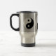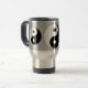 Yin Yang Mug. Esta caneca de viagem de aço inoxidável é decorada com um símbolo Yin Yang preto e branco. "Na filosofia taoista, yin e yang surgem juntos de uma quiescência inicial ou de um vazio e continuam caminhando em paralelo até que a quiescência seja alcançada novamente. Por exemplo, soltar uma pedra numa piscina calma de água simultaneamente levanta ondas e depressões mais baixas entre elas, e essa alternância de pontos altos e baixos na água vai irradiar para fora até que o movimento se dissipe e a piscina volte a se acalmar. Yin-yang, portanto, são sempre qualidades opostas e iguais. Além disso, sempre que uma qualidade atinge seu pico, começará naturalmente a se transformar em uma qualidade oposta: grãos que atingem a altura do cheio no verão (yang completo) produzirão sementes e morrerão no inverno (yin completo) em um ciclo sem fim" - Wikipedia. Uma ideia de presente de excelente.