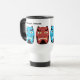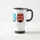 Esta caneca de viagem personalizável apresenta o tradicional demônio folclore oni japonês em cores planas em azul e vermelho. Um oni é um tipo de yokai, ogro ou troll em histórias japonesas. Você pode personalizar o texto! Este design vem em várias opções de cores. Esta caneca faz um presente de excelente para uma fã da mitologia japonesa ou personagens monstruosos.
