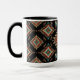 Este design apresenta diamantes em forma de estrela e penas no céu noturno que irradia em laranja, bege arenoso, azul turquesa e negros profundos, criando um padrão que é terra firme e acendido.