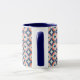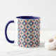 Características deste design moderno do meio século um teste padrão geométrico azul e coral.