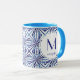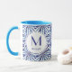Termine com bolinhas e as formas geométricas, este teste padrão azul e branco do art deco trazem para trás a sensação dos anos 30. Elegante, divertimento, e sofisticado, este teste padrão faz para uma caneca distintiva e customizável!