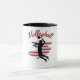 Esta camiseta apresenta uma silhueta de um jogador de vôlei em ação contra um pano de fundo de uma bandeira americana, com a palavra "voleibol" acima.