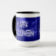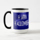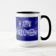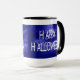 Caneca Texto do Dia das Bruxas Azul Feliz