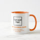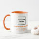 Mug de combinação de cor laranja que você pode personalizar para colocar seu nome comercial, logotipo, endereço e número de telefone. Caneca personalizável que você pode usar em seu compro de café, restaurante ou restaurante para conscientizar o nome da marca enquanto seus clientes gostam de tomar café ou chá aromático e saboroso que você serviu a eles. Como produto de promocional, dê item ou presente a seus clientes ou clientes, uma estratégia de marketing para anunciar sua empresa ou promover sua marca. Verifique a aparência nos lados frontal e traseiro após carregar o logotipo e os textos de digitação. Se a aparência lhe agrada, você pode colocar seu pedido agora. Se você precisar redimensionar e mover o logotipo e os textos para o ajustado nesta caneca ou no tamanho e estilo que você escolherá, mude na ferramenta design. Você também pode fazer outras alterações de acordo com sua preferência na ferramenta design, como alterar a cor da fonte e o estilo da fonte.