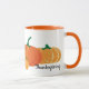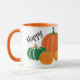 Our "Thanksgiving Happiness in Every Sip" mug is the perfect companion for your Thanksgiving celebration. The mug design shows beautiful pumpkins in shades of orange, yellow and green, capturing the essence of the harvest season. The phrase 'Happy Thanksgiving' elegantly written on the mug adds a touch of gratitude and joy to your coffee or tea moments. Enjoy your favorite beverage as you celebrate in style and share the holiday spirit with this unique and charming mug.