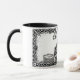 Start your workday with a reminder of where you belong. This panoramic mug features the "The 9-to-5" Tarot Card on one side and the corporate battle cry "Per My Last Email" on the other, linked by our signature Red Glitch Smile.
