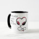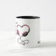 A stylish personalized mug featuring a cute illustration of heart-shaped headphones in black and burgundy, paired with the romantic quote “The Music Sounds Better With You.” Finished with custom names, it’s a perfect gift for couples, music lovers, and anyone who believes love sounds best together.