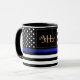 Chá / Café Mug: Thin Blue Line & American Flag (EUA) nome monograma, texto personalizado - imposição / temas policiais - ama meu país, patriotas / fãs esportivos