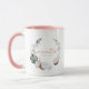 Esta caneca apresenta folhas tropicais de palma, pampas rosa e cocos fofos com uma moderna letra manuscrita com a palavra "tia". Esta caneca pode ser personalizada para a data "estabelecida" para um toque pessoal.