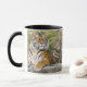Um magnífico tigre repousa nas ruínas de um templo budista. Uma grande escultura de pedra de Buda fica perto. Pastel art por prêmio ganhadora da vida selvagem Kathie Miller