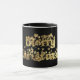 Caneca Típica das estrelas de natal alegres, preta e Dour