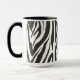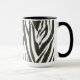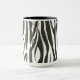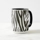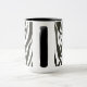 Zebra listra na caneca de café branca e preto.