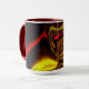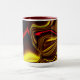 Caneca Traços curvos vermelhos e ouros sobre fundo escuro
