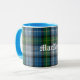 Excelente que olha a caneca escocesa do clã feita no teste padrão azul, verde, cinzento, e preto tradicional da xadrez de MacNeil. O texto do estilo do Velho Mundo no branco lê MacNeil e é customizável ler o que você quer.