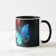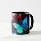 Caneca Três Borboletas brilhantes sobre o fundo noturno